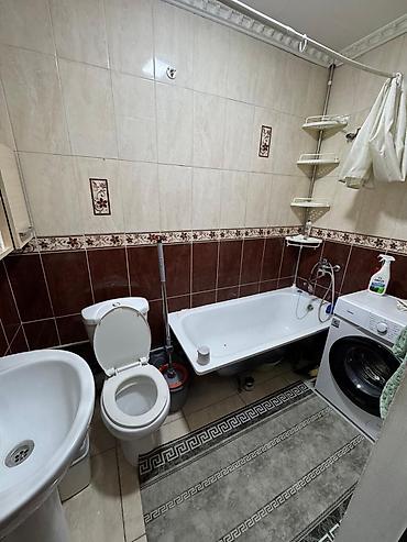 - Санузел: совмещённый, облицован плиткой; ванна, раковина, унитаз, стиральная машина, полки‑органайзеры, душевая штанга.