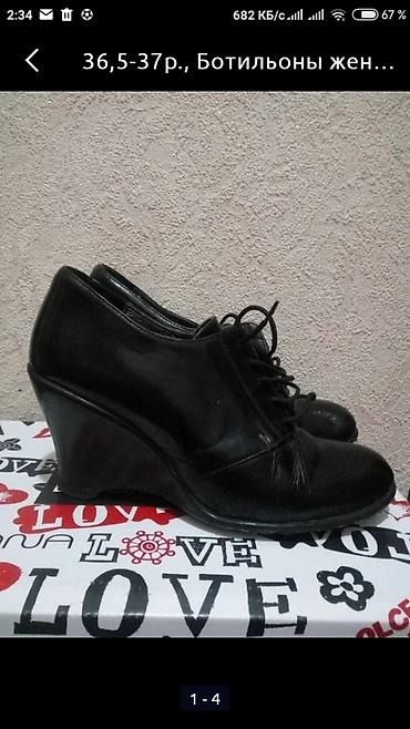 Женская обувь, 2 пары. 1) Кожаные полусапожки черного цвета: б/у одета пару раз -привозной из Турции, куплено по акции за 9500сомов отдам ...