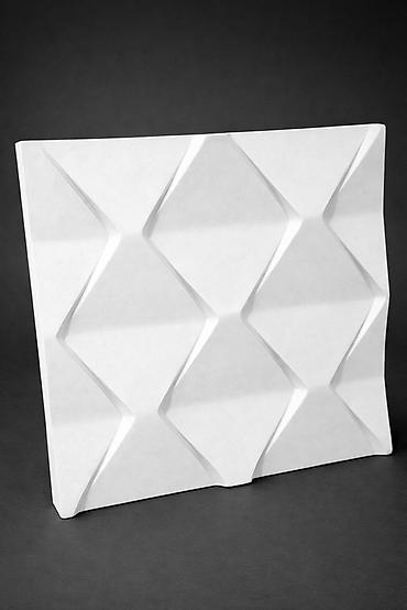 - Настенные 3D панели из гипса с разными рельефами: волны, ромбовидная геометрия и другие современные узоры.