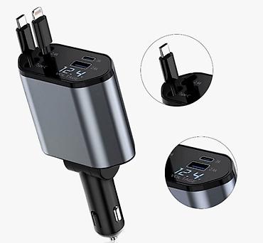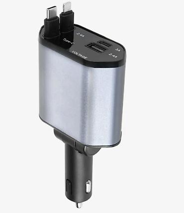 Ваш идеальный спутник в дороге! Наш инновационный адаптер преобразует разъем прикуривателя в мощную зарядную станцию с 4 портами: встроенным выдвижным кабелем Type-C, съемным кабелем Lightning для Apple, а также отдельными портами USB 3.0 и Type-C. Заряжайте одновременно до четырех устройств — смартфоны, планшеты, навигаторы или гаджеты для автомобиля — без лишних проводов!