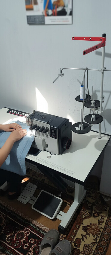 - Тип: промышленный оверлок, многониточный (стойка под 4 катушки).