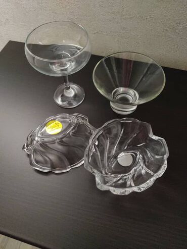 Стаканы и креманки, стекло Pasabahce, высокие 11 шт, низкие 6 шт, креманки 4 шт, все вместе 750 сом