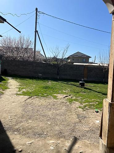 - Участок во дворе: огороженная территория с зелёной лужайкой и площадкой из утрамбованного грунта, есть калитка, рядом частный сектор