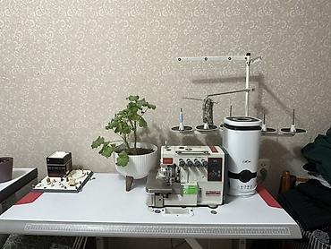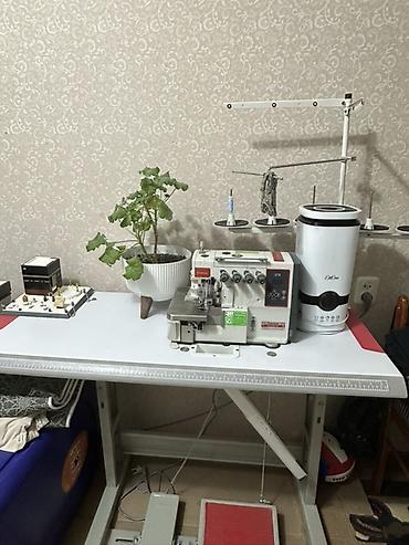 Промышленный оверлок в комплекте со столом и стойкой нитевода.