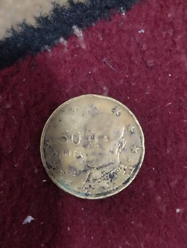 Монета 50 евроцентов, Греция, 2002 год. Описание: - Номинал: 50 euro cent (Евросоюз). - Страна: Греция. - Год чеканки: 2002. - Дизайн аверса (национальная сторона): портрет Элефтериоса Венизелоса;...