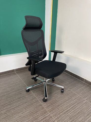 Офисное кресло с высокой спинкой и подголовником - Эргономичная высокая спинка из дышащей сетки для поддержки спины и вентиляции. - Мягкий регулируемый подголовник из кожзаменителя для комфортной ...