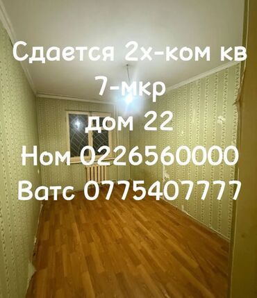 7мкр Сдается 2комн. квартира Без мебели 1 этаж из 4 104-серия Косметический ремонт На долгий срок 35000сом