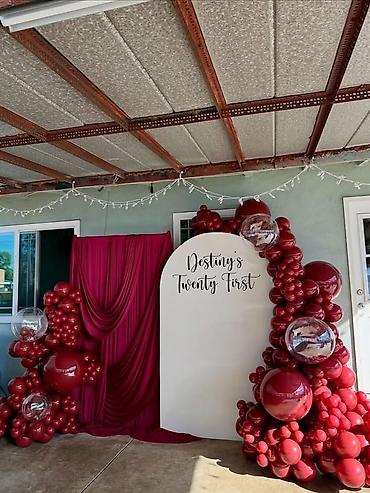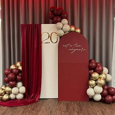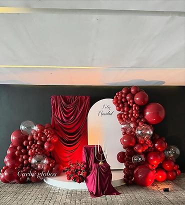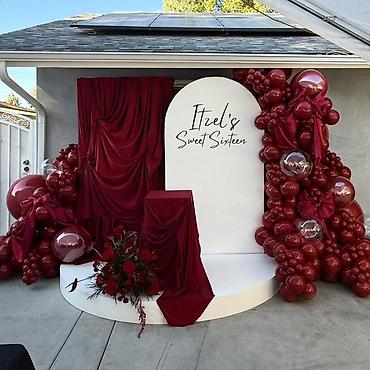 Глубокий красный, бархатные драпировки, объемные глянцевые шары и мягкий свет — фотозона, которая подчёркивает статус, вкус и роскошь.