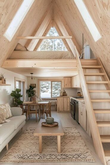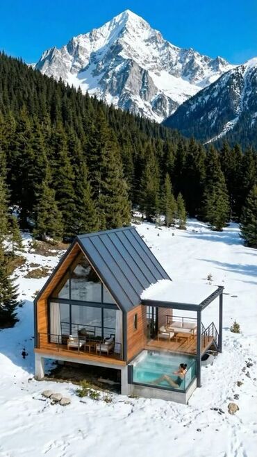 - Архитектура A‑frame: эффектные панорамные фасады, высокая кровля, много света.