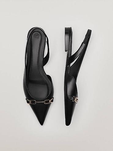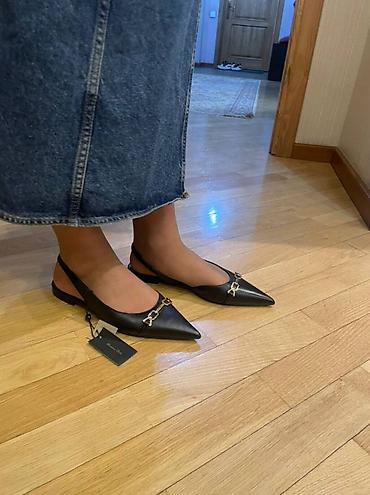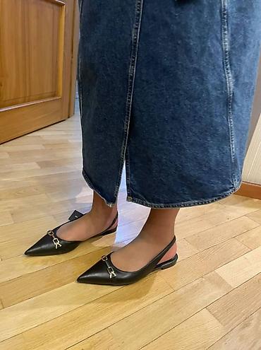 Абсолютно новые кожаные остроносые слингбэки с этикеткой в чёрном цвете;