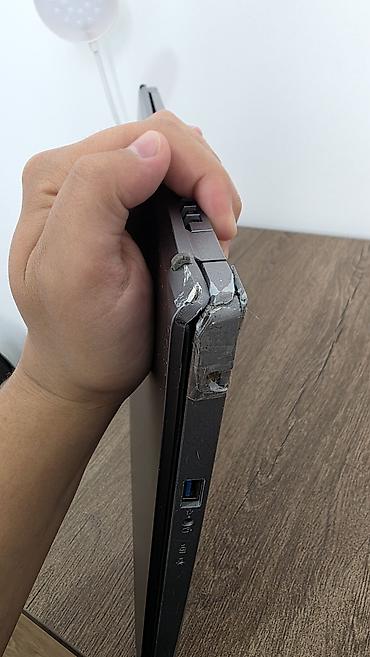 - Угловая часть крышки/петли имеет серьёзные внешние повреждения (видно на фото), крышка закрывается, на работоспособность экрана не указывает.
