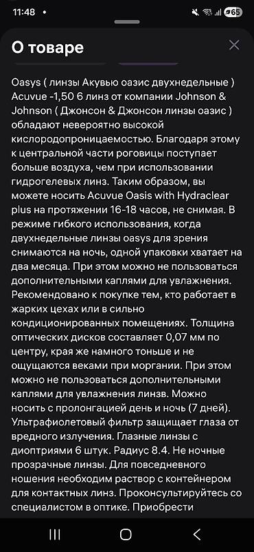 Подходят для длительного дневного ношения, комфортны в сухом воздухе и при работе в кондиционированных помещениях. Для ухода требуется многофункциональный раствор и контейнер для линз. Перед подбором и использованием рекомендуется консультация специалиста.