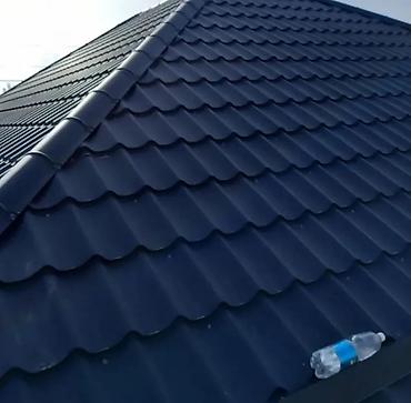 Металлочерепица профилированная - Материал: стальной лист с полимерным покрытием - Цвет: насыщенный красный (глянцевый) - Профиль: волнообразные ступени, имитация классической керамической черепиц...