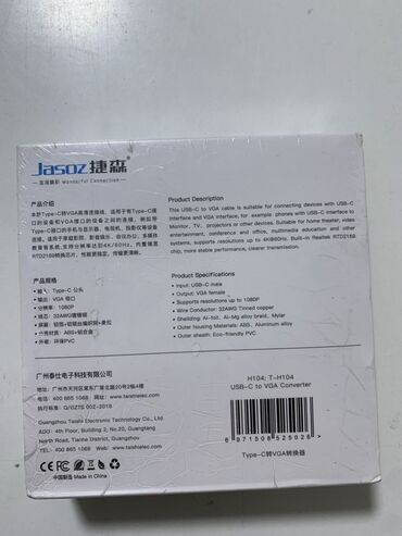 Адаптер Jasoz USB‑C to VGA Converter (Type‑C → VGA) Назначение: -