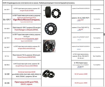 Уточняйте требуемые параметры: PCD ступицы и диска, центральное отверстие (CB), резьбу шпилек/болтов, толщину проставки.