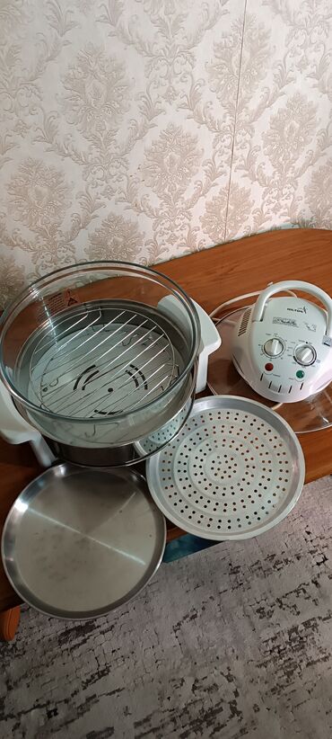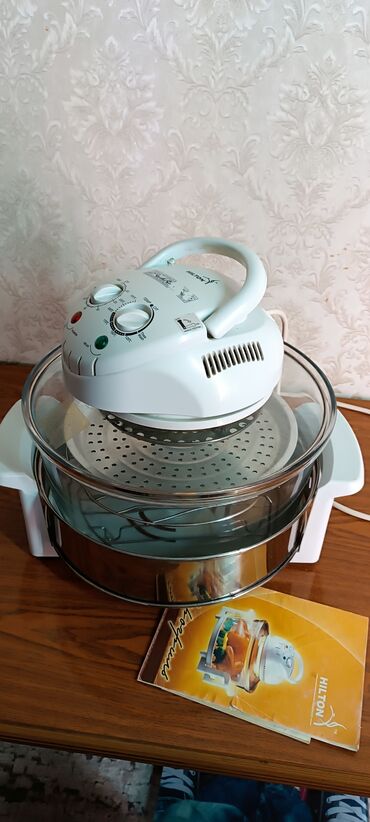 - Настольный электрический аэрогриль с крышкой-нагревателем и стеклянной чашей.
