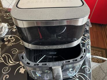 - Вместительная выдвижная чаша с антипригарным покрытием и перфорированной решеткой для равномерного обдува.