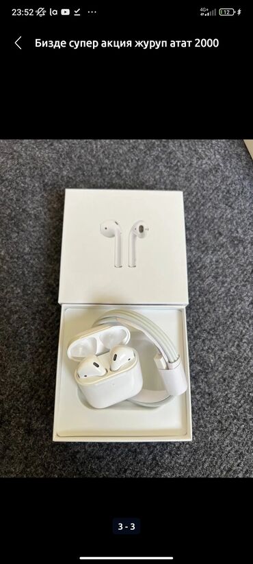AirPods 2 Качество premium звук отличный Оригинальная анимация Батарея держит 6часов Доставка по всему Кыргызстану
