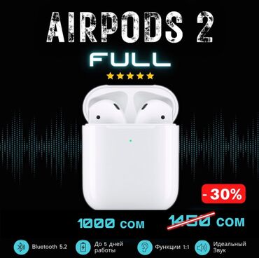 AirPods 2 Качество premium звук отличный Оригинальная анимация Батарея держит 6часов Доставка по всему Кыргызстану