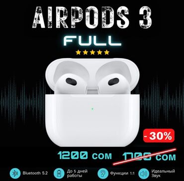 Airpods 3 Оригинальная анимация Батарея на 6 часов Качество premium Самая дешевая цена на рынке ! Доставка по всему Кыргызстану