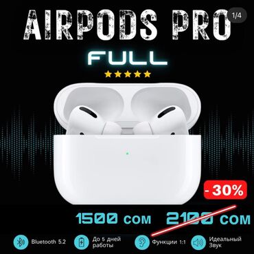 Airpods pro качество premium Оригинальная анимация Подключается на ios/android Быстрая зарядка Шумоподавление и прозрачность работает Батарея на 6 часов Доставка по всему Кыргызстану