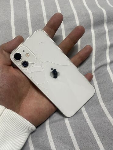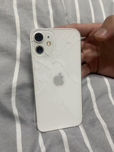 IPhone 12 mini, цвет белый Особенности и комплектация: - Экран 5.4", плоские грани, фронтальная камера в вырезе. - Две основные камеры с вспышкой. - Задняя стеклянная панель с трещинами (видно на ...