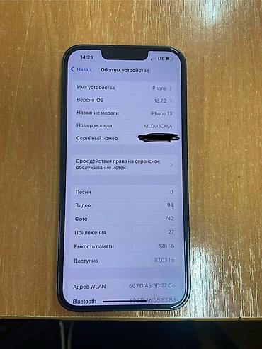 IPhone 13, Б/у, 128 ГБ, Midnight, Зарядное устройство, Защитное стекло, Чехол, 80 %