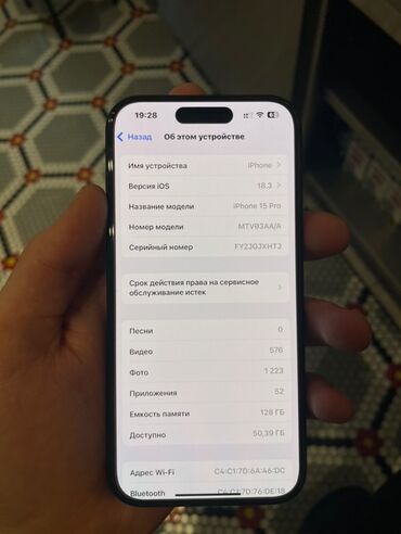 IPhone 15 Pro, Б/у, 128 ГБ, Blue Titanium, Кабель, Коробка, 88 %