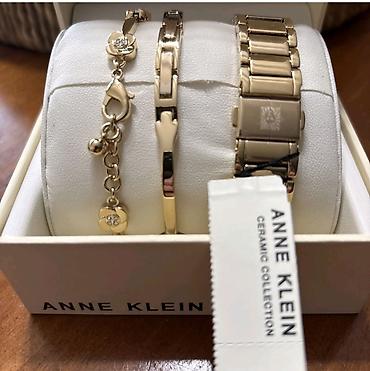 Женские прямоугольные часы набор, с двумя браслетами Anne Klein