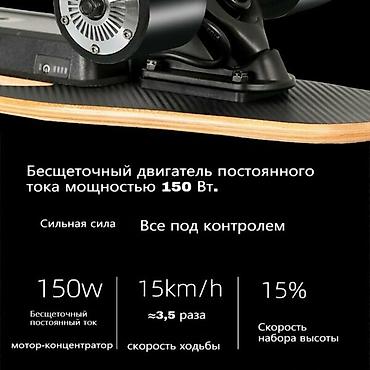 - Проезжает до 15 км на одном заряде ( после окончания зарядки работает как обычный скейт);
