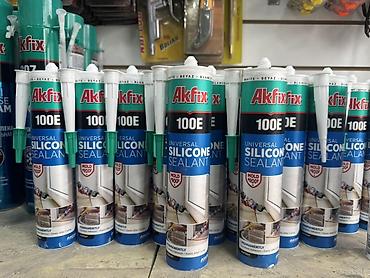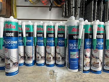 - Akfix 100E Universal Silicone Sealant: универсальный силиконовый герметик, устойчива к плесени (Mold Proof), эластичная после полимеризации, обеспечивает долговечную адгезию. Для ванных комнат, кухонь, сантехнических узлов и общестроительных швов.