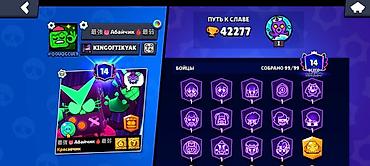 Игровой аккаунт Brawl Stars - Кубков: 42 107 (рекорд 42 108), Лига клубов/путь к славе отображены на скриншотах - Собрано 98 из 99 бойцов - Множество бойцов прокачаны до Силы 11 - Прокачанные и тр...
