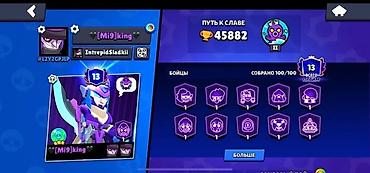 Аккаунт Brawl Stars Основное: - Уровень профиля: 13 - Кубки: 45 882 -