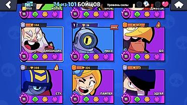Аккаунт хорошо прокачан под командные режимы: большое число бойцов с 11 уровнем силы, собрана редкая косметика и популярные легендарки. Отличная база для дальнейшего пуша трофеев и участия в ивентах.