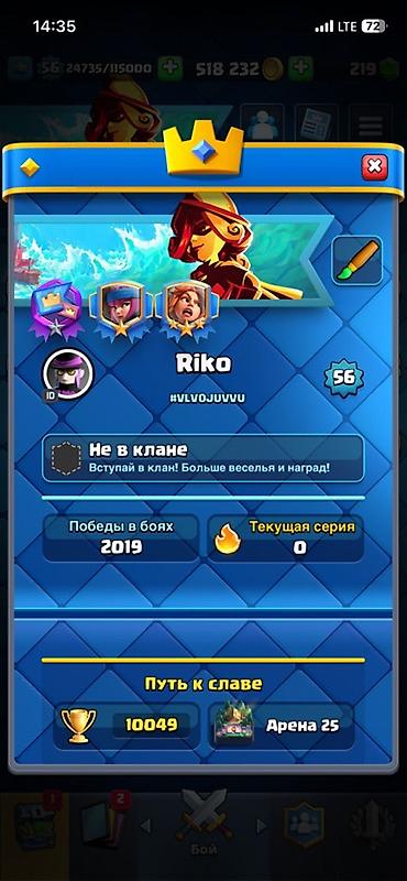 Аккаунт Clash Royale - Ник: Riko, тег #VLVOJUVVU - Уровень короля: 56