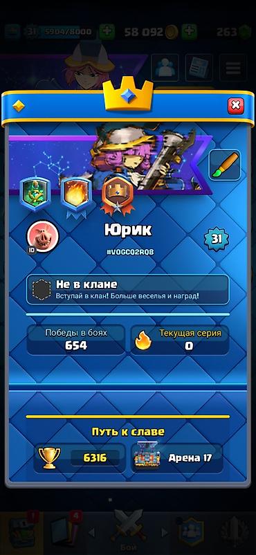 Аккаунт Clash Royale - Уровень короля: 31 (5904/8000 опыта) - Кубки