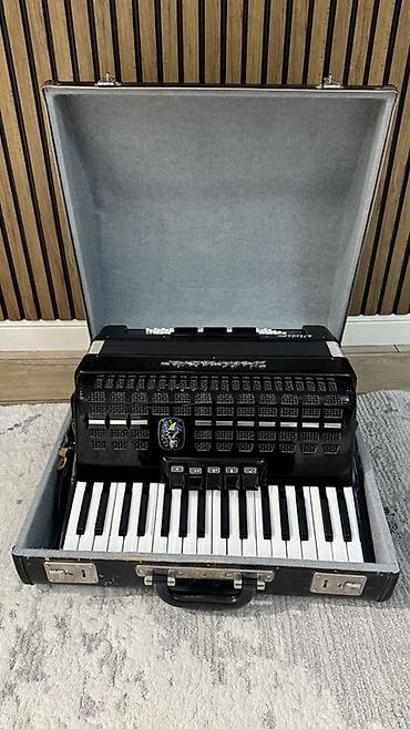 Аккордеон Weltmeister (кнопочно-клавишный, “пьяно-аккордеон”). Характеристики и особенности: - Правая клавиатура: 41 клавиша (стандартная фортепианная). - Левая клавиатура: 120 басов, классическая...