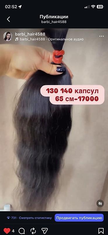 Наращиваемые волосы на капсулах (темные, прямые/слегка волнистые).