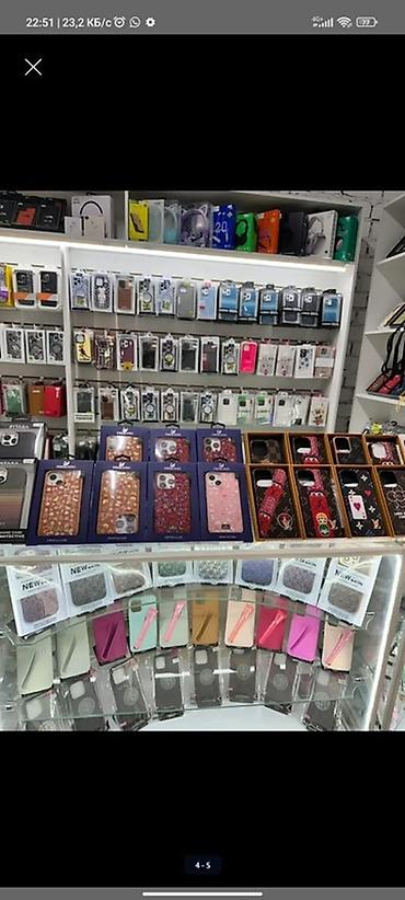 Аксессуары разложены по сериям и размерам, доступны решения для iPhone и Android-линеек. Подбор по модели на месте, установка защитного стекла.