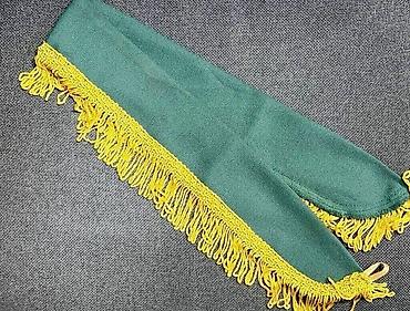Изумрудный подхват с бахромой: Особо нарядный элемент, декорированный густой золотистой бахромой по нижнему краю. Сочетание глубокого зеленого цвета и золотого декора придает изделию благородный и торжественный вид.