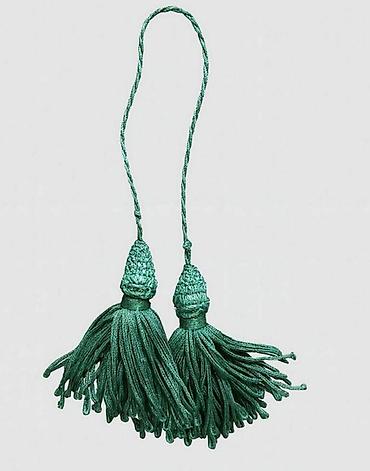 Выполнена в темно-изумрудном цвете. Состоит из витого шнура и пышной юбки из тонких нитей. Кисть является универсальным аксессуаром, который можно комбинировать с любым из представленных подхватов.