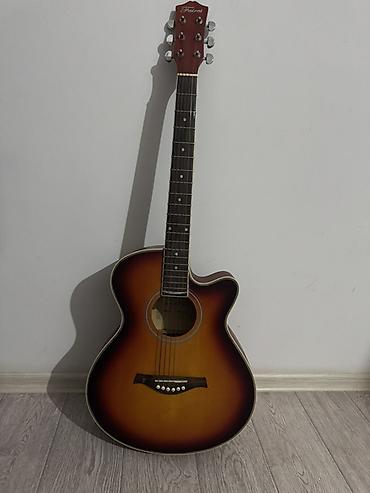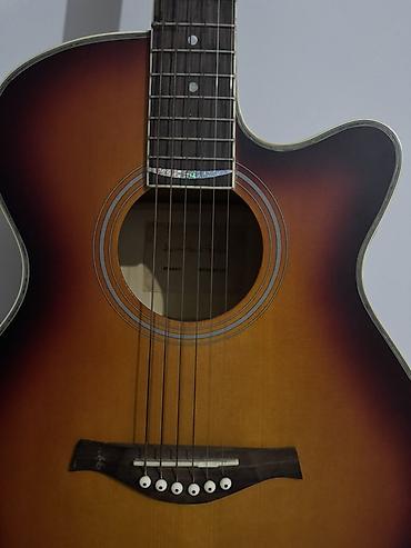 ПРОДАЕТСЯ 8000 СОМ!!!!Электро-Акустическая гитара с вырезом (cutaway), корпус формата дредноут, окрас sunburst. Особенности: - 6 струн, классический струнодержатель с белыми пинами - Накладка и...