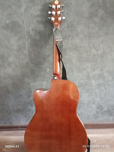 Подойдёт для аккомпанемента, игры медиатором и пальцевой техникой; удобный гриф, комфортная посадка благодаря форме корпуса. Размер полноразмерный, универсальный для репетиций и домашней игры.