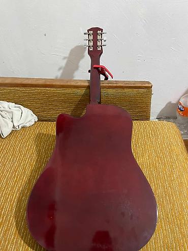 - Дополнительно: установлен каподастр (на фото красного цвета); на верхней деке наклейка