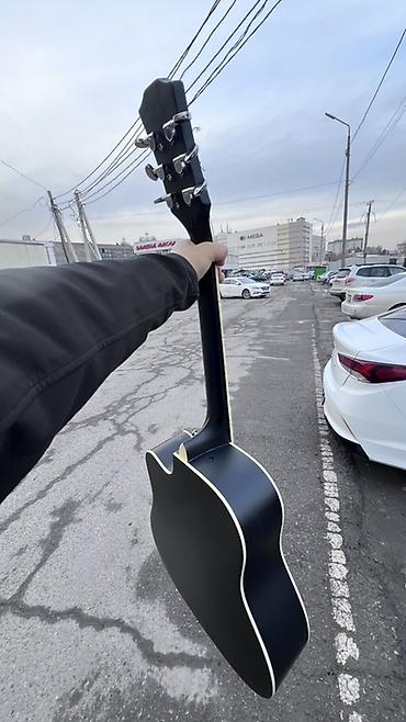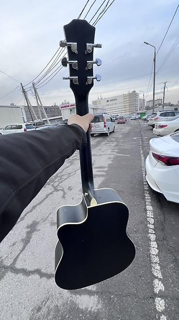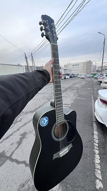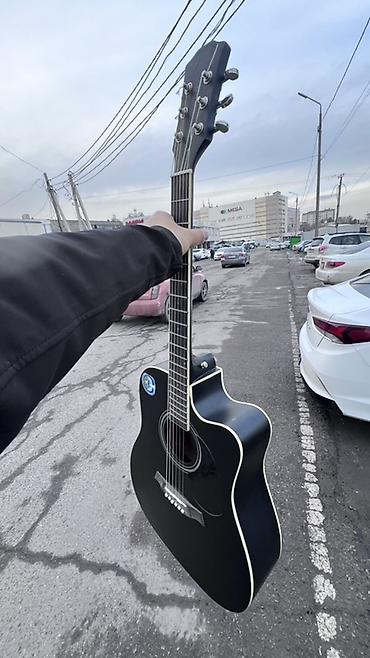 Акустическая гитара 6‑струнная, форма корпуса Dreadnought с вырезом (cutaway). Цвет матовый чёрный, окантовка светлая по корпусу и грифу. Колки металические хромированные, классическая мензура, 20 ладов, навинченный гриф. На деке круглая розетка с орнаментом, бридж под стальные струны с белыми пинами. Наклейка на корпусе (можно снять при желании). Подойдёт для сопровождения вокала, обучения и игры медиатором; удобный доступ к верхним ладам благодаря вырезу. Универсальное звучание с хорошим запасом громкости благодаря полноразмерному корпусу.