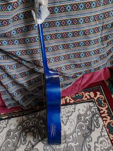 Акустическая гитара, корпус формата классика/фолк. Цвет — насыщенный синий (глянцевое покрытие). Корпус полноразмерный с нормальной глубиной резонатора для объёмного звучания. Гриф прямой, с анкеровкой не видно; колки классического типа (под нейлоновые струны), головка и колковые колышки защищены упаковочным пакетом.