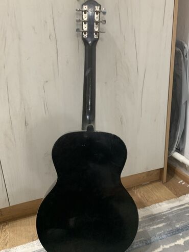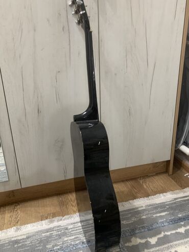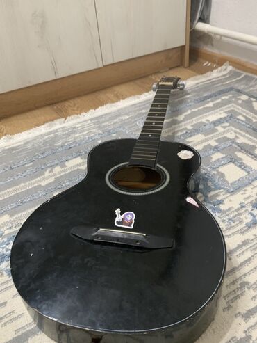 Акустическая гитара 6-струнная, форма корпуса дредноут с вырезом (cutaway). Цвет — черный глянец, окантовка розетки с белыми кругами. - Материал грифа: окрашенная древесина, накладка темная с точ...