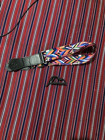 - В комплекте разноцветный ремень для гитары и пластиковый каподастр.