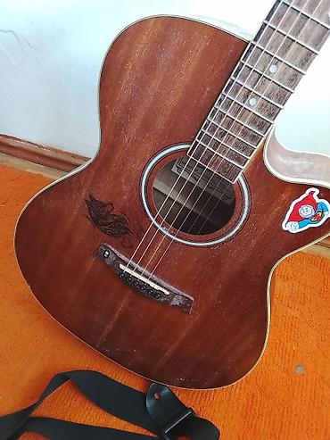 - Особенности: вырез под плектр отсутствует, на деке декоративная гравировка и наклейка; удобный тонкий корпус среднего размера, хорошо подходит для аккомпанемента и игры от ладов выше 12-го.