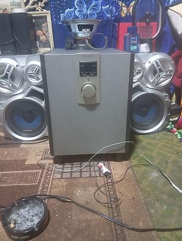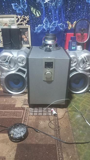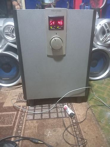 - В комплекте на фото: сабвуфер Microlab с лицевой панелью управления, кабели подключения AUX.